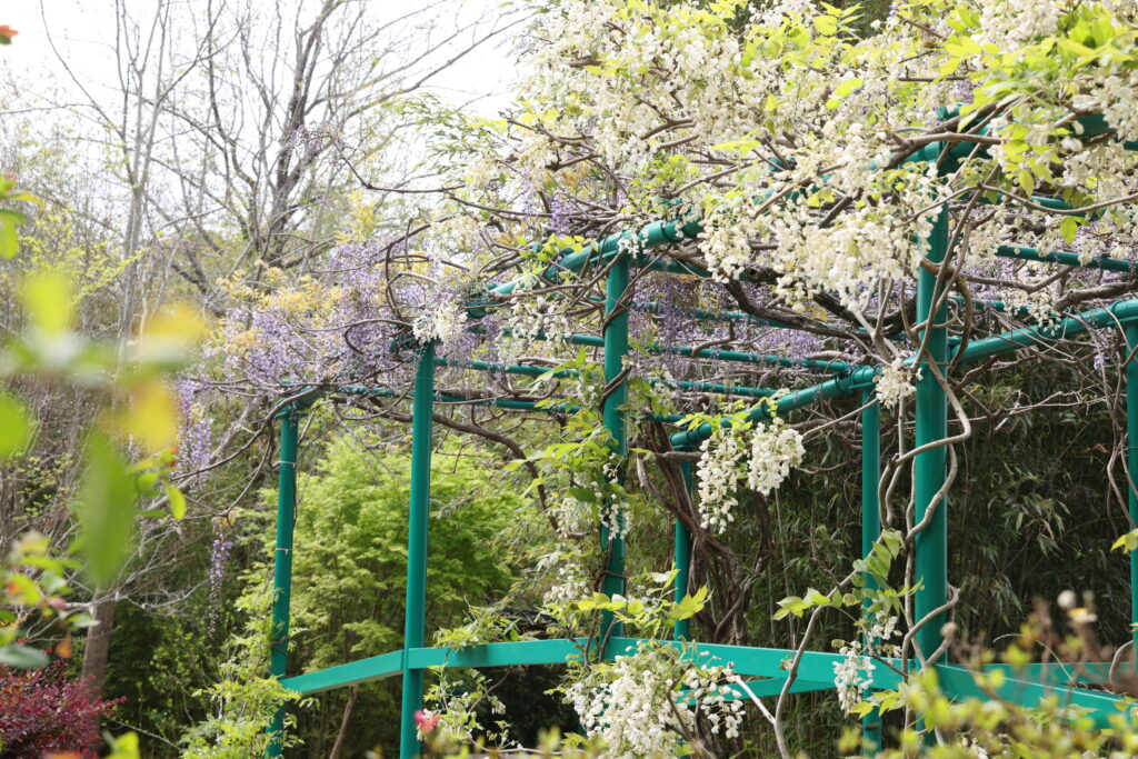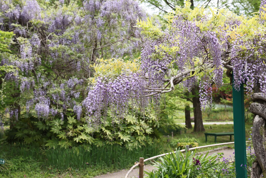 「太鼓橋」や水の庭の奥にある「藤棚」のフジが見ごろになりました。