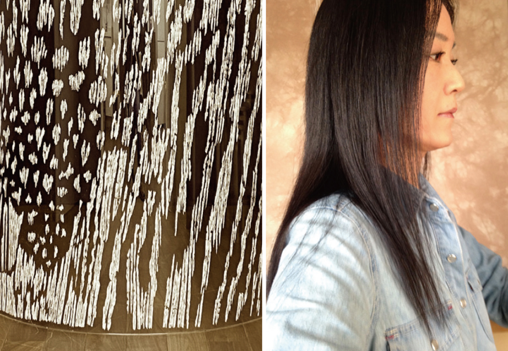 アール型の透明アクリル板の背面に彩色樹脂を塗布する事で、透過する光や、背後の光景と呼応させるサイトスペシフィックな作品を制作している。アクリル板を複数枚設置し、近くを歩き回ることにより動くレイヤーを楽しむ体験型の作品。