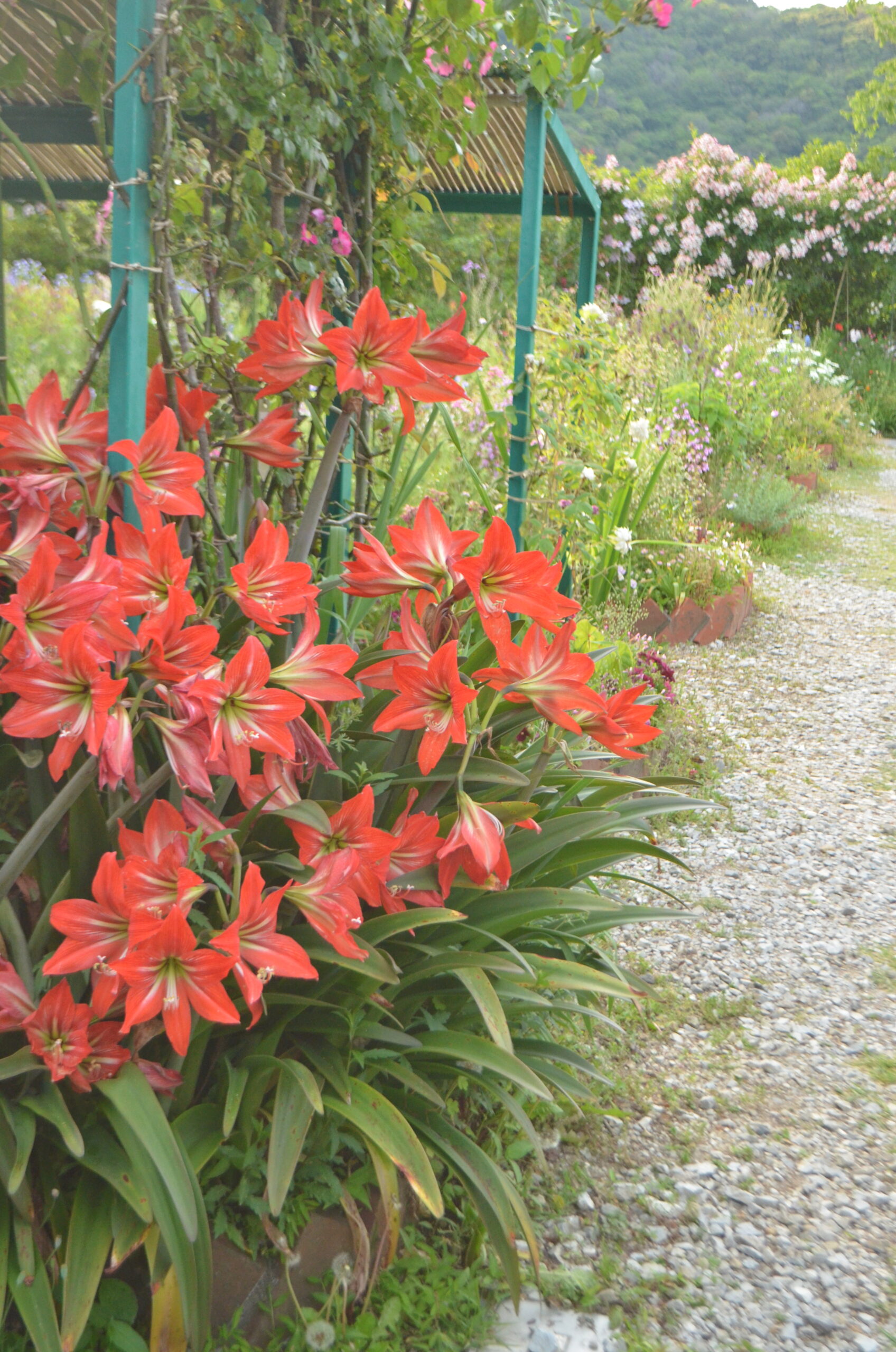 温帯性スイレン(赤白黄桃色)、バラのアーチ、サラサウツギ