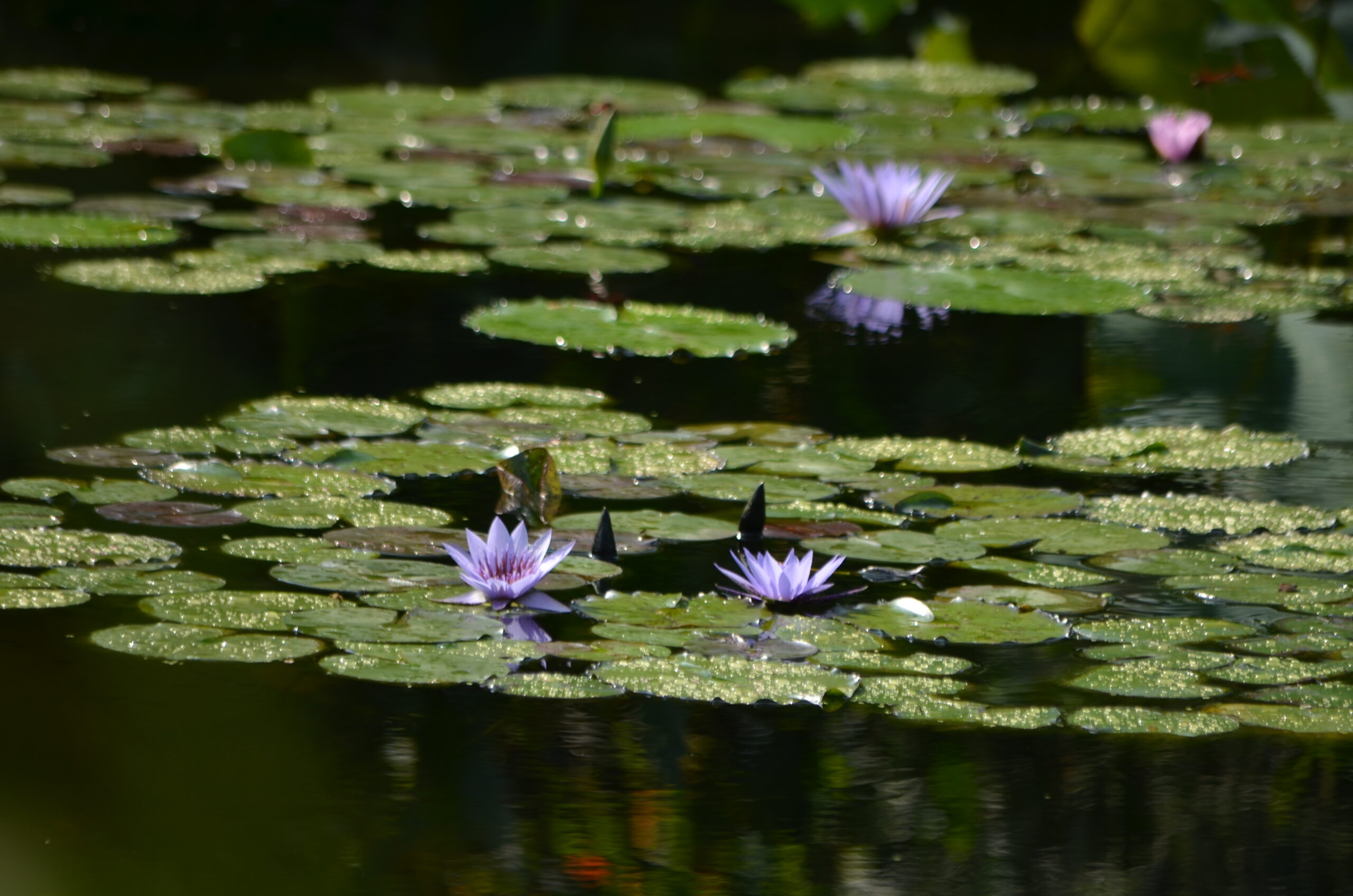 水鏡が澄んで美しい世界を映します。スイレンはほぼ終了となりました。