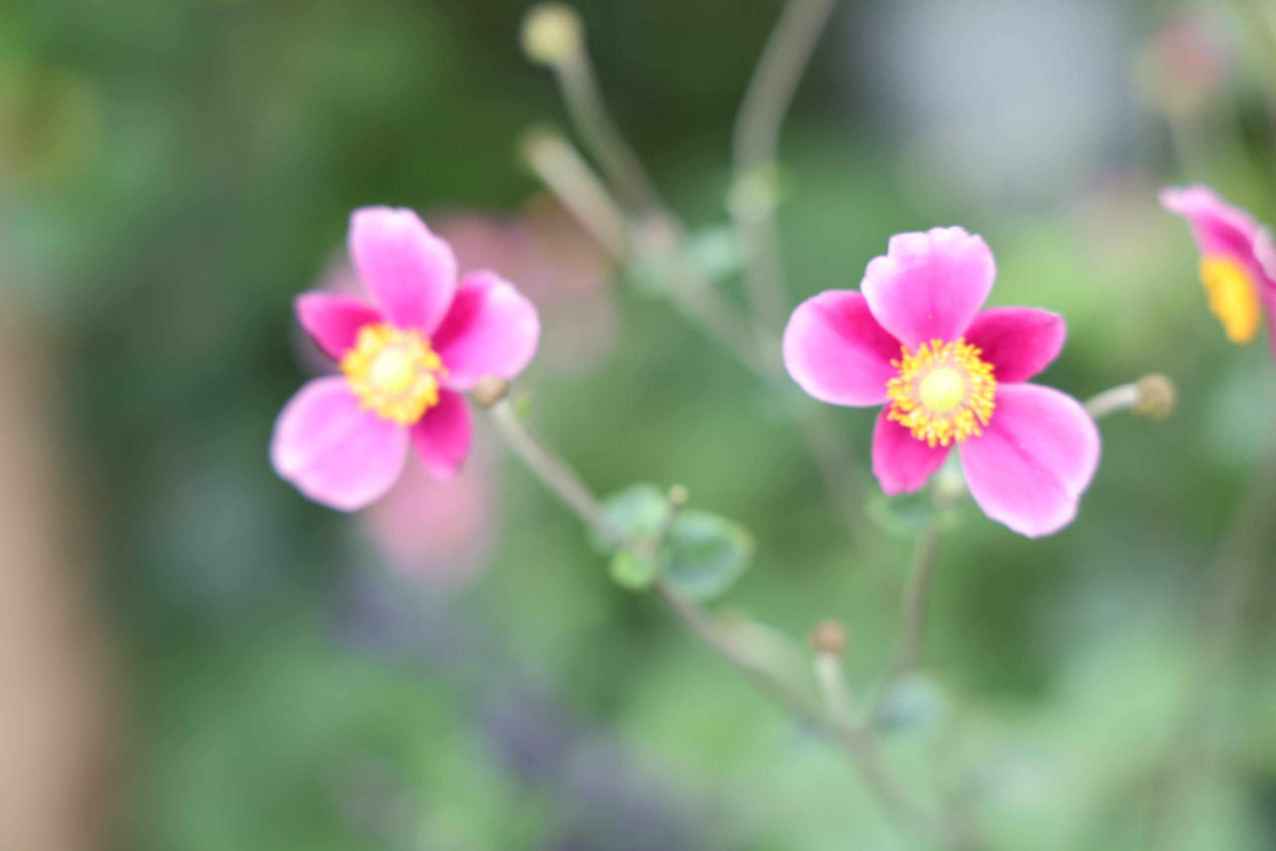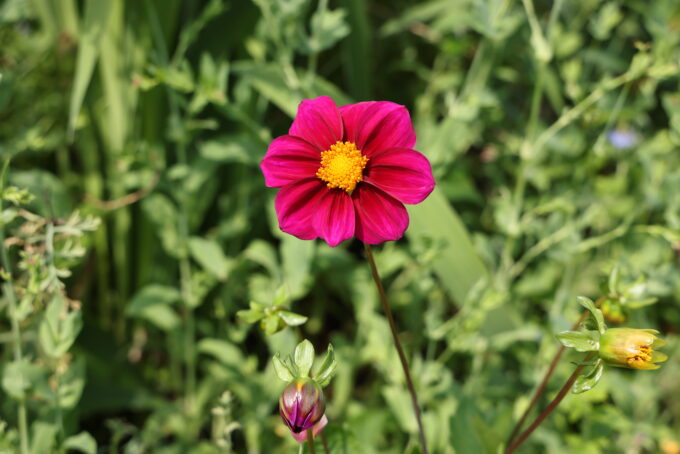 ボリュームのある緑の中に落ち着いた色の花々が咲き始めました。秋の始まりを感じる花の庭です。
